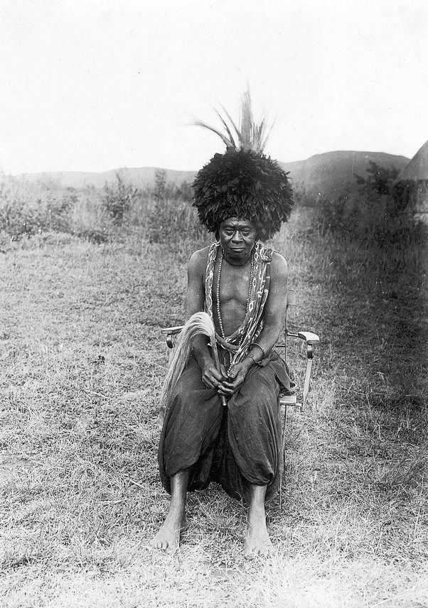 Extrait BQuand ils arrivent dans un village, ils sont accueillis par les émissaires du roi, conviés aux palabres, et photographiés avec la cour. Sur un de ces portraits, mon père et ma mère posent autour du roi Memfoï, de Banso. Selon la tradition, le roi est nu jusqu’à la ceinture, assis sur son trône, son chasse-mouches à la main. À ses côtés, mon père et ma mère sont debout, vêtus d’habits fatigués et empoussiérés par la route, ma mère avec sa longue jupe et ses souliers de marche, mon père avec une chemise aux manches roulées et son pantalon kaki trop large, trop court, serré par une ceinture qui ressemble à une ficelle. Ils sourient, ils sont heureux, libres dans cette aventure. Derrière le roi, on aperçoit le mur du palais, une simple case de briques de boue séchée où brillent des brins de paille. J. M. G. Le Clézio, L'Africain, 2004, p. 87. |