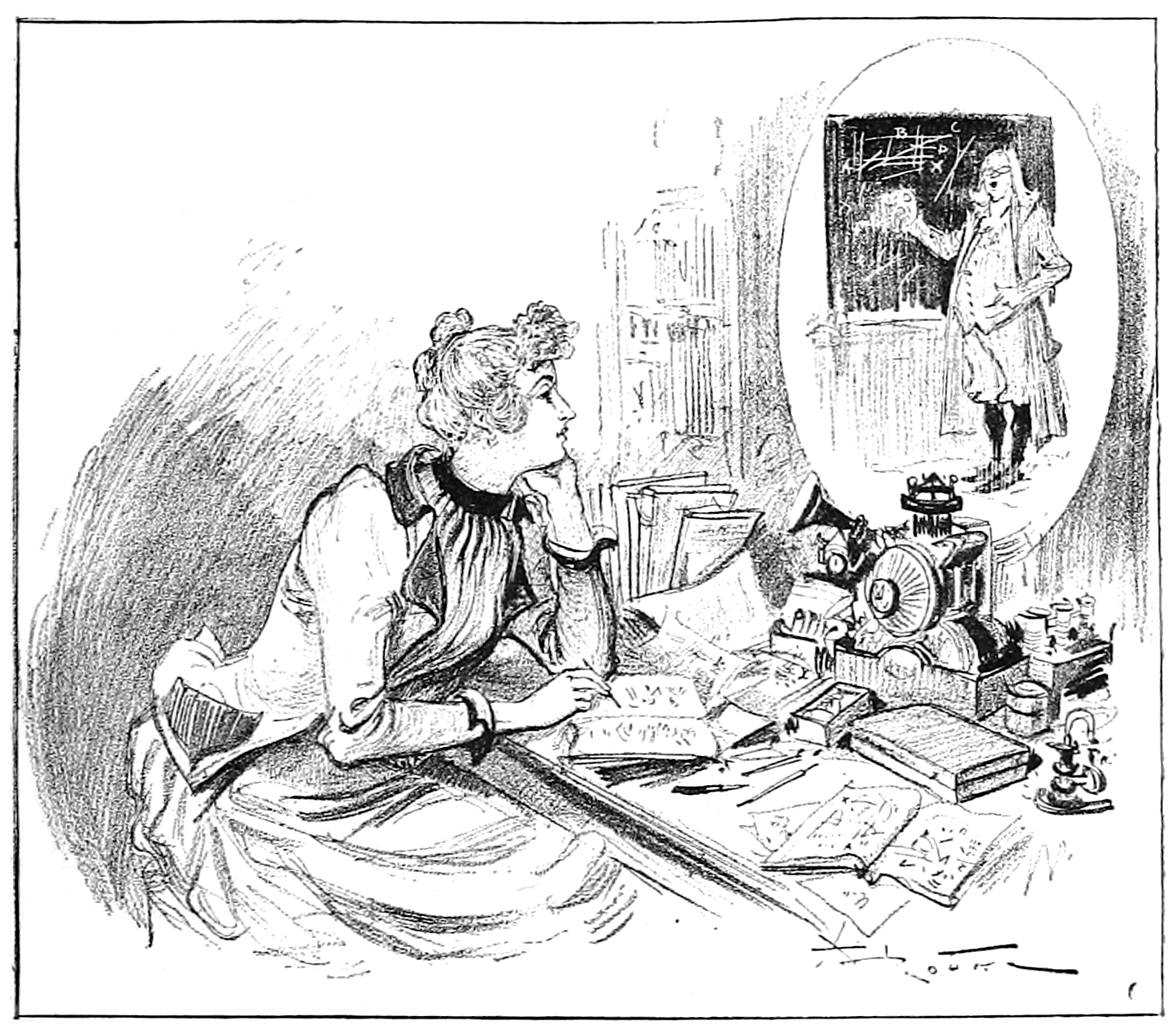 Robida Albert (1892) La vie électrique : le vingtième siècle / texte et dessins, par A. Robida, Paris, Librairie illustrée. Cité dans : Baron, G.-L. (2013). Enseignants, technologie éducative et techno-réformateurs. Vers une société sans écoles ? Recherches en didactiques, 16(2), 59-73. https://doi.org/10.3917/rdid.016.0059.