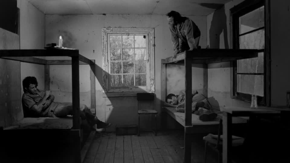 De façon très étrange, les trois prisonniers retrouvent dans l'intérieur de la cabane un décor exactement similaire à celui de leur cellule : une pièce étroite, deux lits superposés qui se font face.
