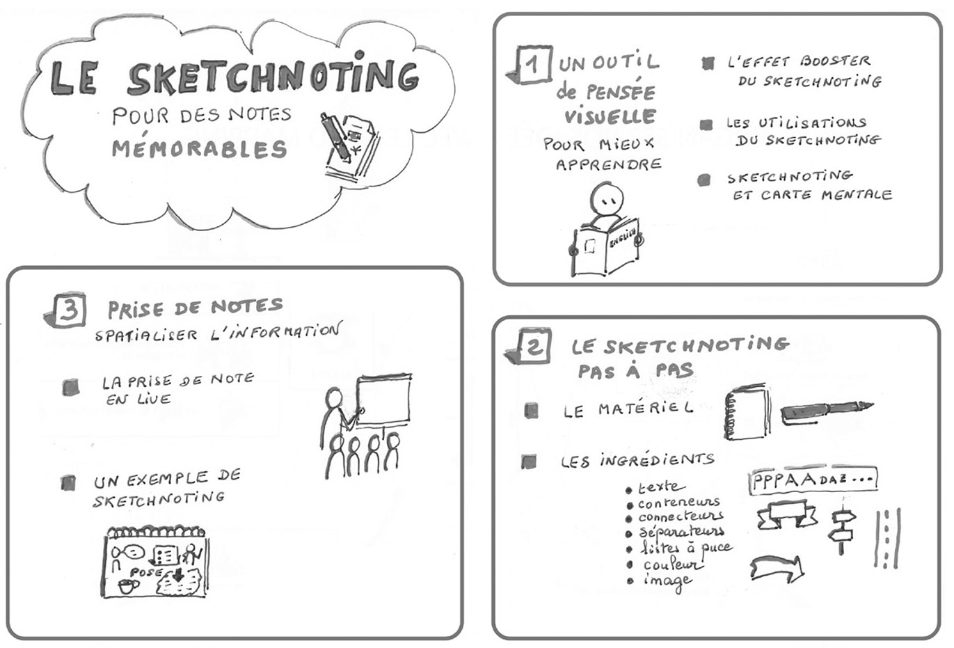 Delengaigne, X. et De Laboulaye, T. (2019). 5. Le sketchnoting : pour des notes mémorables. Apprendre à toute vitesse : Faites plaisir à votre cerveau (p. 126-149). InterEditions. https://shs.cairn.info/apprendre-a-toute-vitesse--9782729619497-page-126?lang=fr.